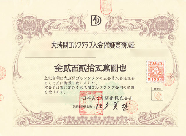 大浅間ゴルフクラブ(株券)中心相場:※ ~ 620