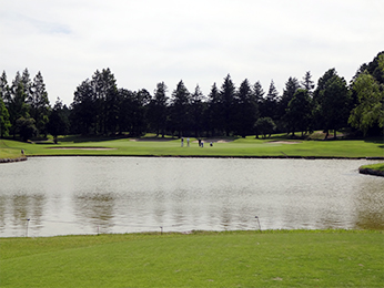 左右OB、手前に池のあるプレッシャーホール。正確なティーショットが必要。ピンが奥の場合、左にバンカー、奥にOBがあるので、ピンのやや手前から確実に攻めていこう。