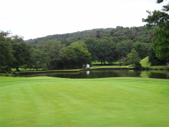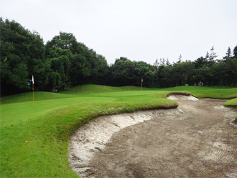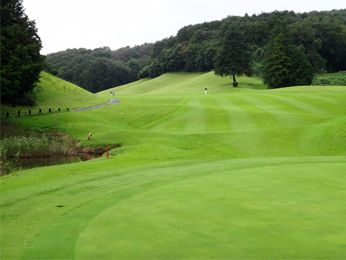 アウトはオーソドックスな林間コース。インは打ち下ろしやドッグレッグしたホールがあり、変化に富んでいます。14ホールに池やクリークが絡んでいて、印象に残るホールが数多くあります。池は造成前からある自然の池で、コースに溶け込んでいます。7番・12番はバンカーが1つもありませんが、池やクリークのトラップが待ち受けています。グリーンは大き目なベントのワングリーンで、適度なアンジュレーションがあり、スリリングなパティングが楽しめます。OBはコース外周のみです。