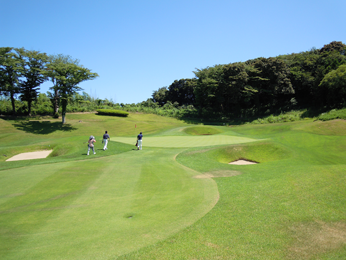 グリーンは中央に2メートルもの段差が縦に走っていて、奥行きもなく外すとトラブルを招く。