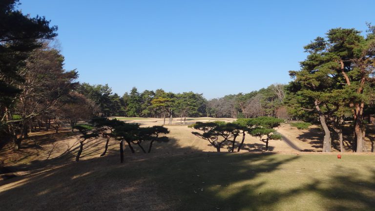 コースの特徴はなんて言っても松です。ホール両サイドの松林、フェアウエイに点在する松、グリーン周りの松。ハザードとして戦略性を高める役目は勿論のこと、借景を盛り立てています。