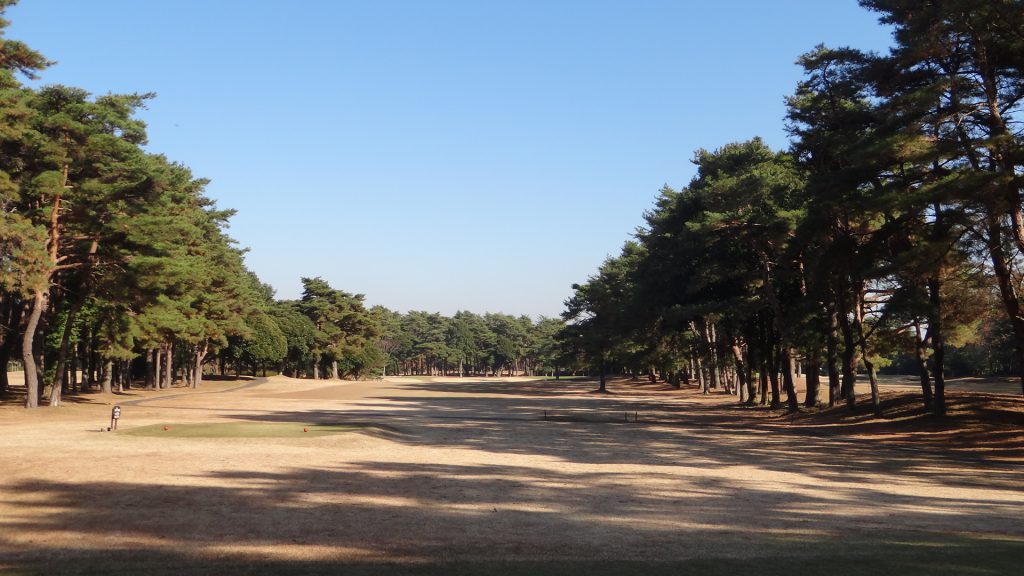 ティインググランドに立つとフェアウエイに点在する松の木に注意が注がれる。距離が短いので、ドライバー以外の選択肢も。