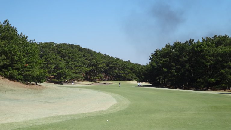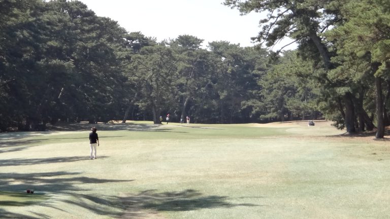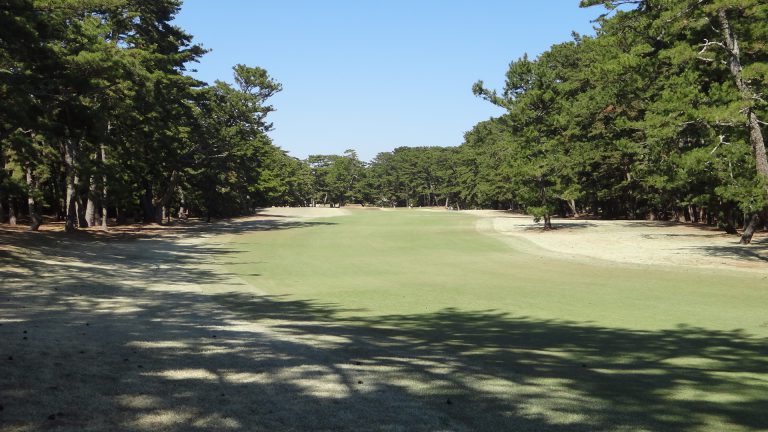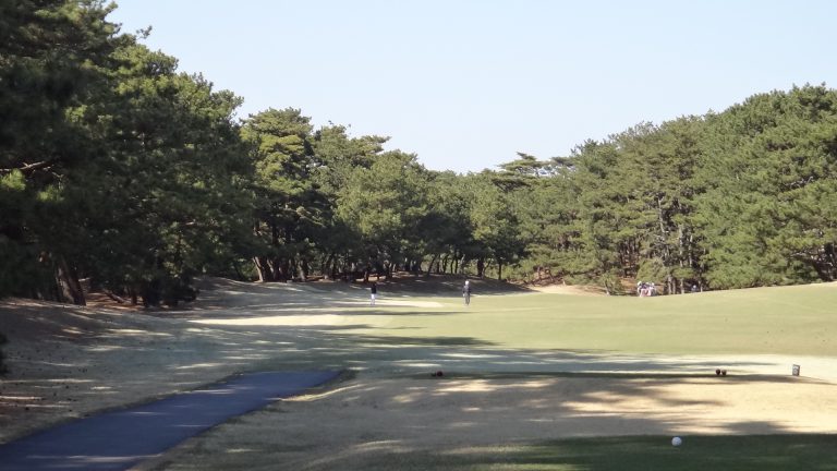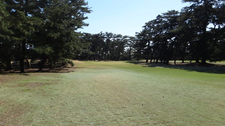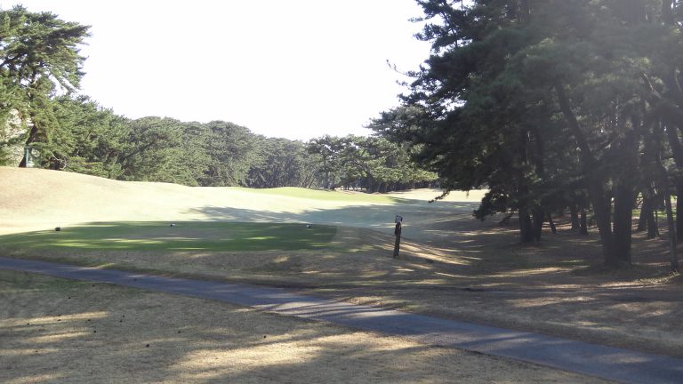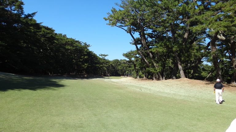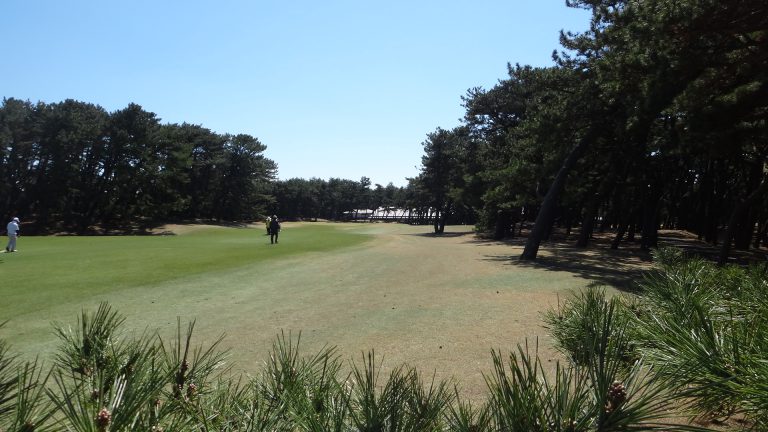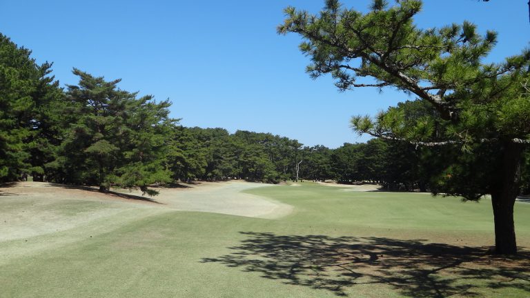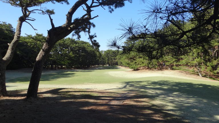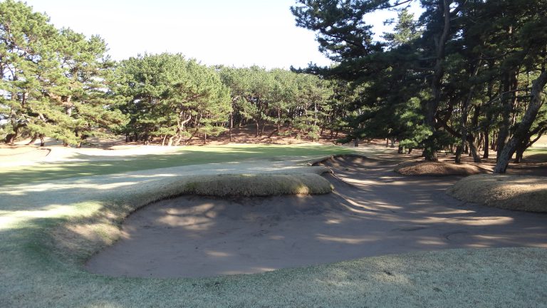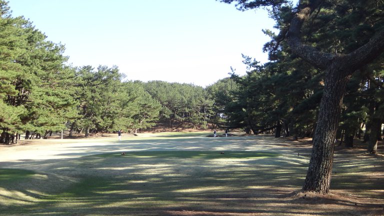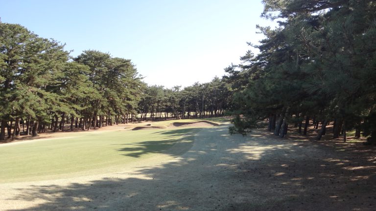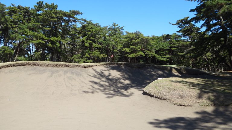 シーサイドコースの特徴の強風で斜めに生い茂った松林や横に張り出した松の枝が空中のハザードになり難易度を高めています。ひとたび風が吹くとより一層難しくなります。