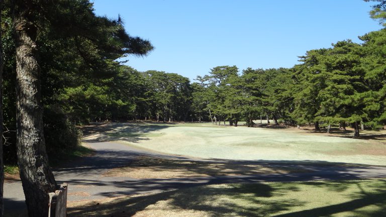 松林はフェアウエイ両サイドのみならずグリーン周りもかなり密集していて、前方への脱出を阻みます。