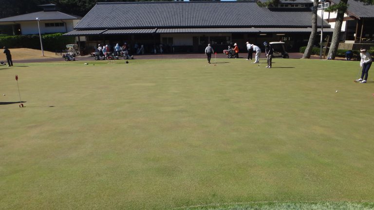 グリーンは10フィートと表示されていましたがそれ以上に早く感じられ、スリリングなパッティング、アプローチを体験できました。