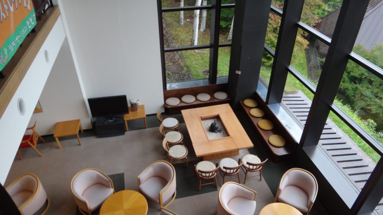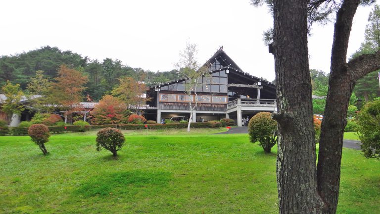 クラブハウスは木造合掌造りで重厚な雰囲気をかもしだしています。レストラン内は太い梁が使用されていて天井も高く、クラブの歴史と風格を感じられました。
