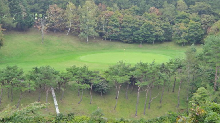 コース設計は富沢誠造氏で、白樺等の高原らしい樹木がふんだんに残された雄大な造りになっています。谷越え、ドッグレッグ、打ちおろし、打ち上げと飽きのこないレイアウトになっていて、谷越えの5番のショートホールに代表されるように印象に残るホールが多々あります。